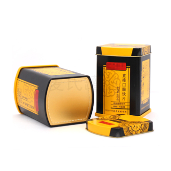 此款直接口服飲片鐵盒創意的封口異形造型設計,76*67*102mm尺寸,可包裝20g不等的中藥直接口服飲片產品,為了順應多樣化的市場包裝需求,此款直接口服飲片鐵盒可做成正方形、心形、圓形、橢圓形、車形、書本形等異形造型。