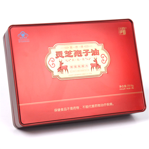產品咨詢: 長方形靈芝孢子油鐵盒_馬口鐵保健品鐵盒包裝定制工廠