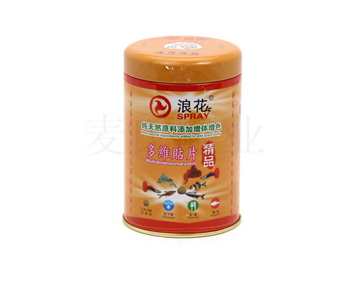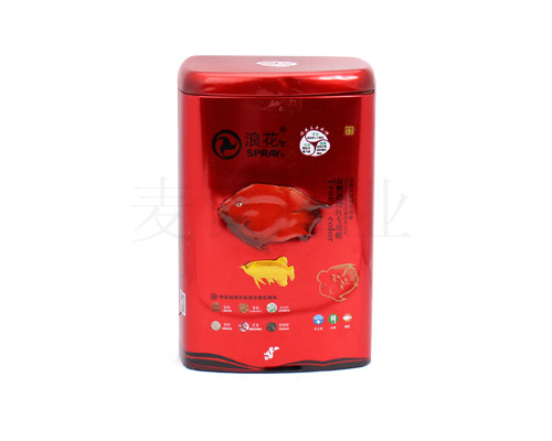 此款魚糧鐵包裝盒為麥?zhǔn)瞎迾I(yè)為廣大客戶推出的魚糧鐵包裝盒, 此款魚糧鐵包裝盒子的規(guī)格為 150*100*300mm。鐵罐的印刷工藝 為CMYK+1專,外過水性亮光油,內(nèi)涂透明油,客戶可根據(jù)自身產(chǎn)品的需求選擇啞油、皺紋 油、爆炸油、珠光油、金油等印刷工藝。