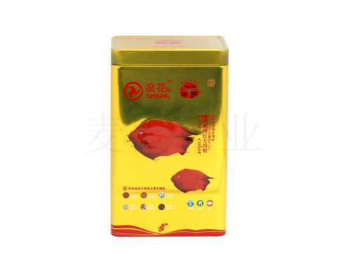此款魚飼料鐵盒為麥氏罐業(yè)為廣大客戶推出的魚飼料鐵盒,此款鐵盒的規(guī)格為120*95*149mm。鐵盒的印刷工藝為CMYK+1專,外過水性亮光油,內(nèi)過符合國家規(guī)定的金油,客戶可根據(jù)自身產(chǎn)品的需求選擇啞油、皺紋油、爆炸油等印刷工藝。