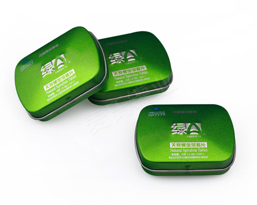 • 綠A螺旋藻片包裝鐵盒,300粒裝螺旋藻鐵皮盒子制造工廠