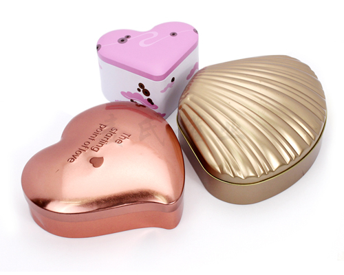 此款心形巧克力鐵盒結構為三片罐,有蓋、身、底裝配而成。蓋子為內卷線縮口蓋,扣底結構。鐵盒材質都是采用0.23mm鍍錫馬口鐵制作,盒形是目前為歡迎的食品金屬包裝產品之一,為了更好地適應市場需求,可選擇磨砂進行制作。