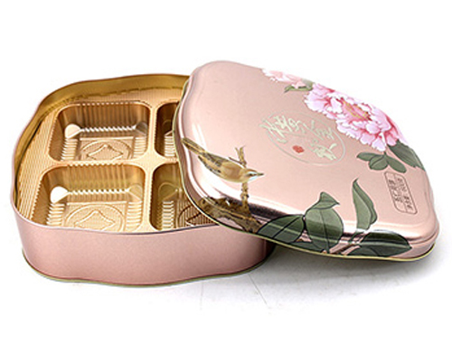 此款異形五仁月餅鐵盒的尺寸為310-195-60mm,為了順應多樣化的市場包裝需求,這款糖果馬口鐵盒可做成心形、正方形、橢圓形、車形、書本形等異形造型。