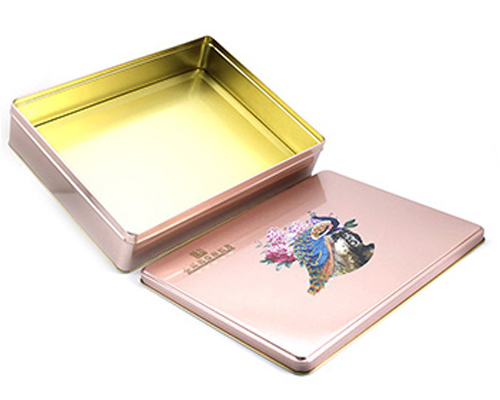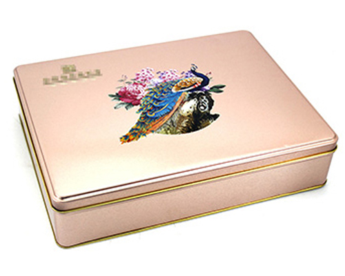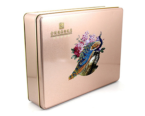 此款長方形酒店月餅禮品鐵盒包裝的尺寸為290*220*70mm,為了順應(yīng)多樣化的市場包裝需求,這款糖果馬口鐵盒可做成心形、正方形、橢圓形、車形、書本形等異形造型。